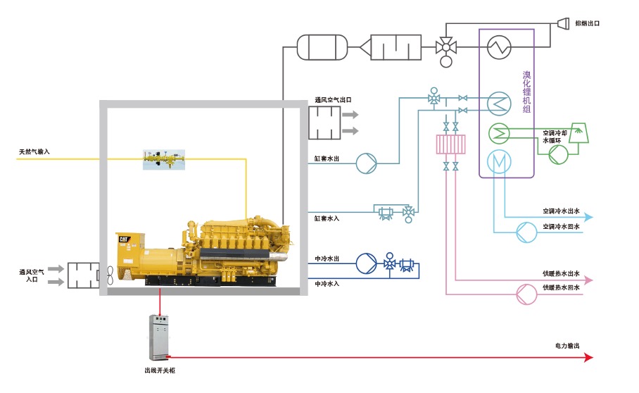 冷能:热水运行制冷、蒸汽运行制冷、直燃制冷