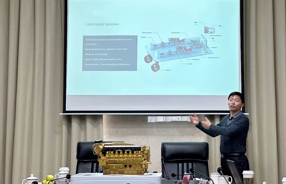 在本次会议中,利星行机械技术总工杨建华先生以及项目调试经理殷晓伟还针对利星行机械涉及的船舶新能源技术以及利星行机械新开发的业务做了全面介绍,并与镇江船厂就现行船舶新能源解决方案展开了深入的技术探讨。
