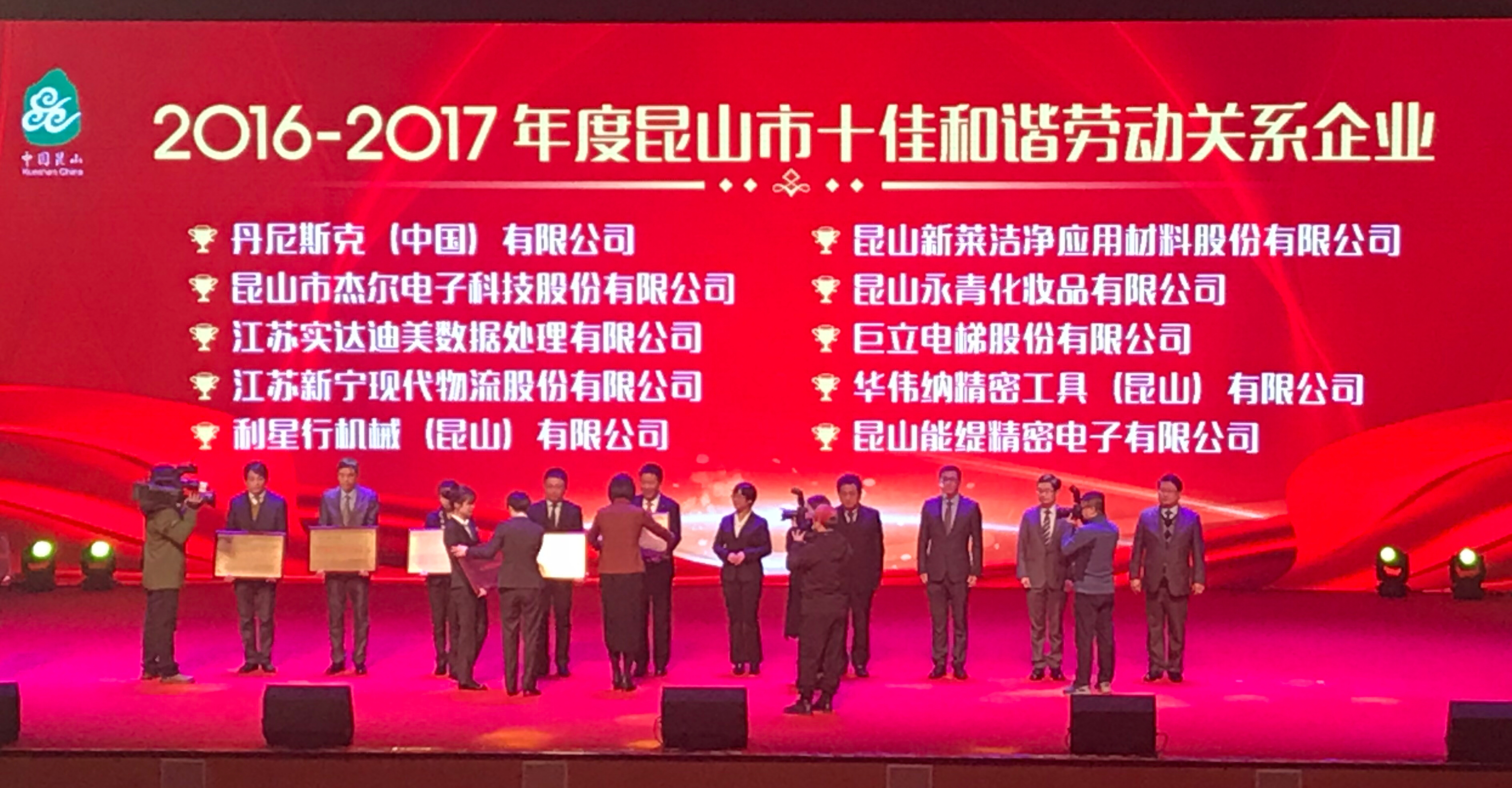 2018年2月28日,在昆山市2017年度转型升级表彰大会上,利星行机械(昆山)有限公司被授予2016~2017年度昆山市“十佳和谐劳动关系企业”称号,利星行机械集团首席执行官傅耀生先生代表公司参加表彰大会并领取奖牌。