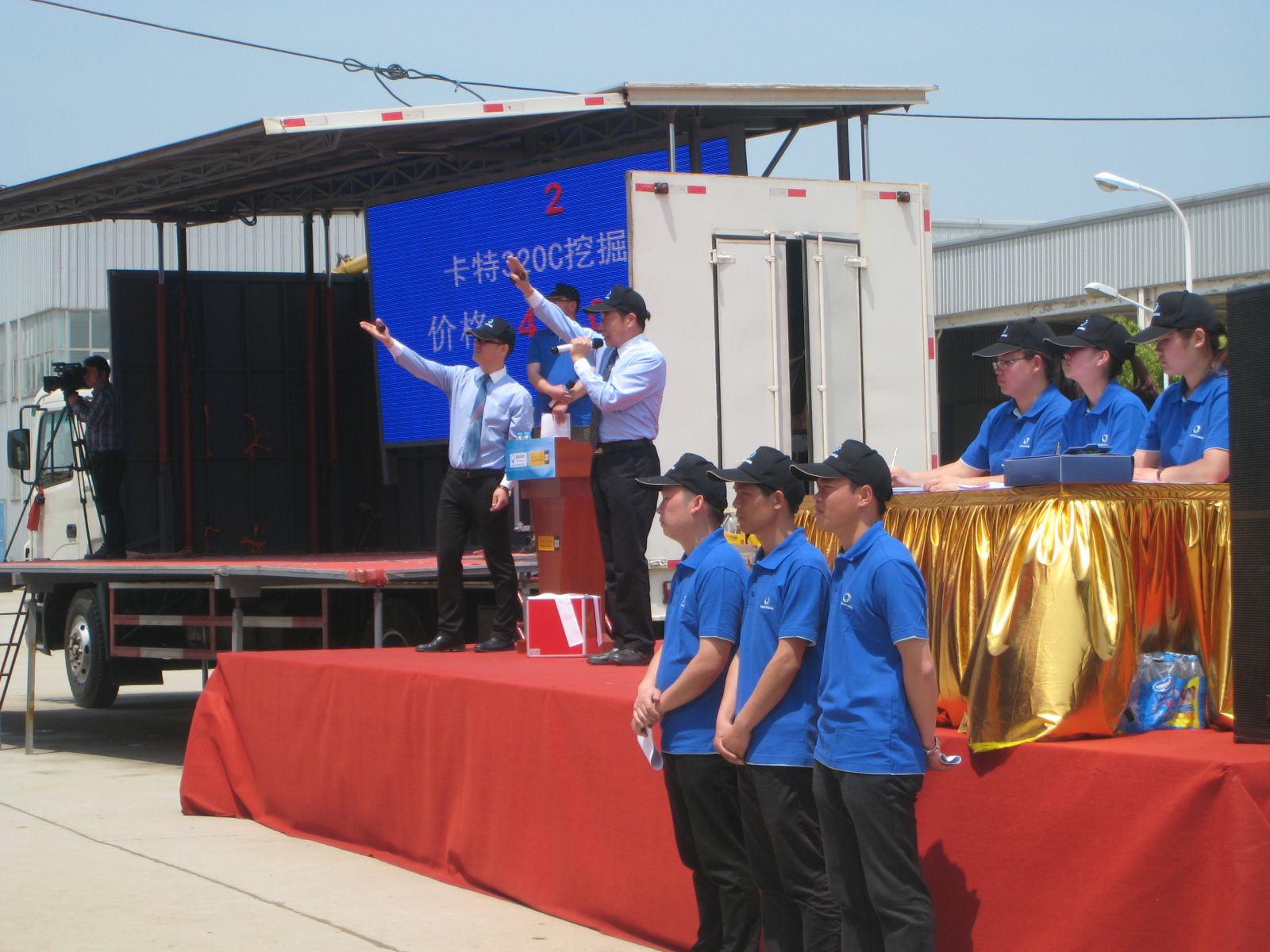 当第一台306机器缓缓走出场,拍卖活动正式拉开帷幕。客户们按照自己心中的价格紧跟每台机器,按照规则不断举牌加价,每次喊价都势在必得,每台的竞拍都是你“争”我“抢”,每台价格都在不停地探寻大家心里的底价。而时间也在大家投入忘我的竞拍中悄然到了晚上7点,最后一台也是本次竞拍的第一百台设备卡特330D,出现了最后一次竞拍高潮,几个竞价人经过近20个回合的较量,最后才锤落成交,拍卖会也圆满地落下了帷幕。