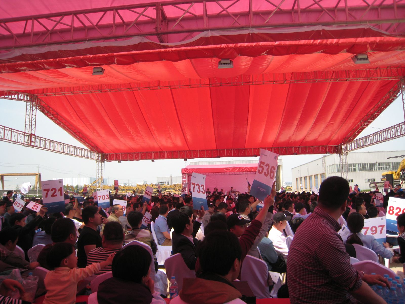 22日天公给力,头一天还细雨靡靡,冷气袭人的天气,突然雨过天晴,阳光灿烂。客户们经过了一天半的“摸底侦察”,已经对自己钟爱的机器胸有成竹,纷纷提前坐到了拍卖区,拿好了自己的竞拍号牌,就等自己心中的“她”姗姗出场。