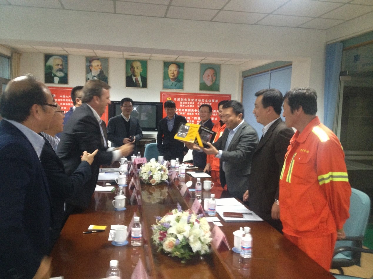 金秋十月,天高云淡,风和日煦,卡特彼勒集团全球副总裁Karl Weiss、卡特彼勒山工机械有限公司总经理杨锞宝、卡特彼勒行业大客户经理葛炎、卡特彼勒山工机械有限公司张良,利星行机械服务总经理 Stanley Sheung、利星行机械大客户部总经理帖日平等一行于2013年10月30日上午,拜访了山东青岛港集团,青岛港集团副总裁焦广军,刘晋部长等领导给予了热情的接待,双方就目前的合作进行了友好深入的交谈。