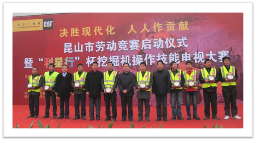 2012年3月11日昆山市总工会、周市人民政府、文广局、社会保障局主办,利星行机械协办的“利星行机械杯”挖掘机操作技能电视大赛在利星行机械昆山公司举行。昆山市政府领导,利星行机械高层均参加此次活动的开幕仪并致辞。.