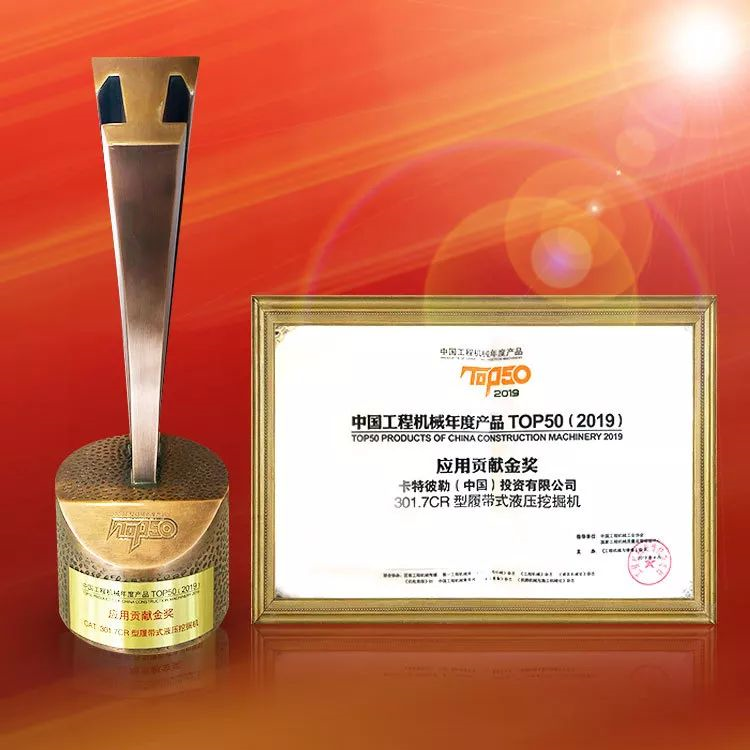 2019年4月2日,由中国工程机械工业协会、国家工程机械质量监督检验中心指导的“2019工程机械产品发展(北京)论坛暨中国工程机械年度产品TOP50颁奖典礼”在京隆重举行。CAT®301.7 CR迷你挖实力登榜荣获工程机械年度产品“TOP50”应用..